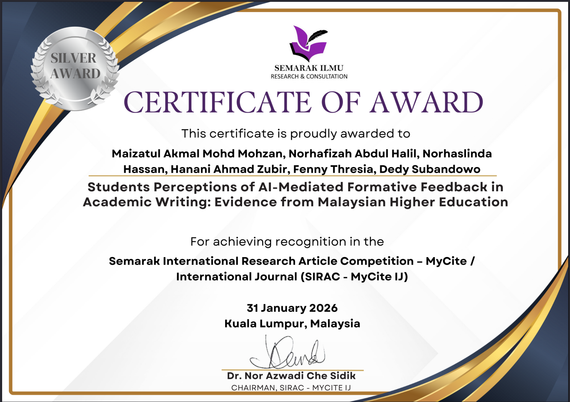 “Students’ Perceptions of AI-Mediated Formative Feedback in academic writing: Evidence from Malaysian Higher Education”