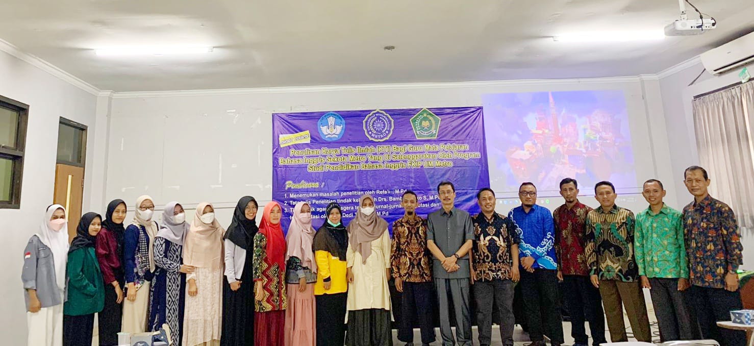 Pendidikan Bahasa Inggris Universitas Muhammaadiyah (UM) Metro gelar workshop Penulisan Karya Tulis Ilmiah (KTI) bagi Guru Mata Pelajaran Bahasa Inggris, berlangsung di Gedung E 1.6 kampus setempat, Sabtu (13/08/2022).