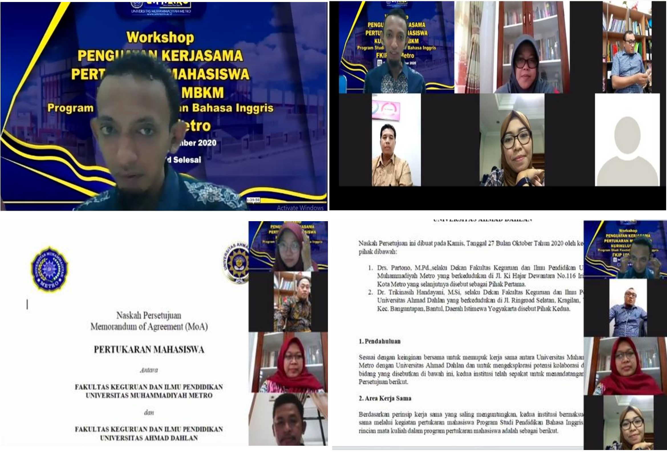 Program Studi Pendidikan Bahasa Inggris (PBI) di Fakultas Keguruan dan Ilmu Pendidikan (FKIP) Universitas Muhammadiyah (UM) Metro dan PBI Universitas Ahmad Dahlan (UAD) Yogyakarta menjalin kerjasama yang kuat dalam sebuah workshop pertukaran mahasiswa yang diselenggarakan secara daring pada tanggal 4 November 2020. Acara ini menjadi wadah penting bagi kedua program studi untuk mempererat kolaborasi mereka dalam mengembangkan pengalaman belajar mahasiswa di bidang bahasa Inggris.