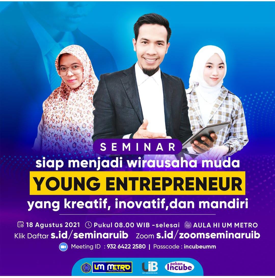Metro, 18 Agustus 2021 - Program Studi Pendidikan Bahasa Inggris Universitas Muhammadiyah Metro menggelar seminar bertajuk "Young Entrepreneur" yang bertujuan untuk mencetak wirausaha muda yang kreatif, inovatif, dan mandiri. Acara ini berlangsung di Aula HI Universitas Muhammadiyah Metro dan dihadiri oleh mahasiswa dari berbagai program studi.