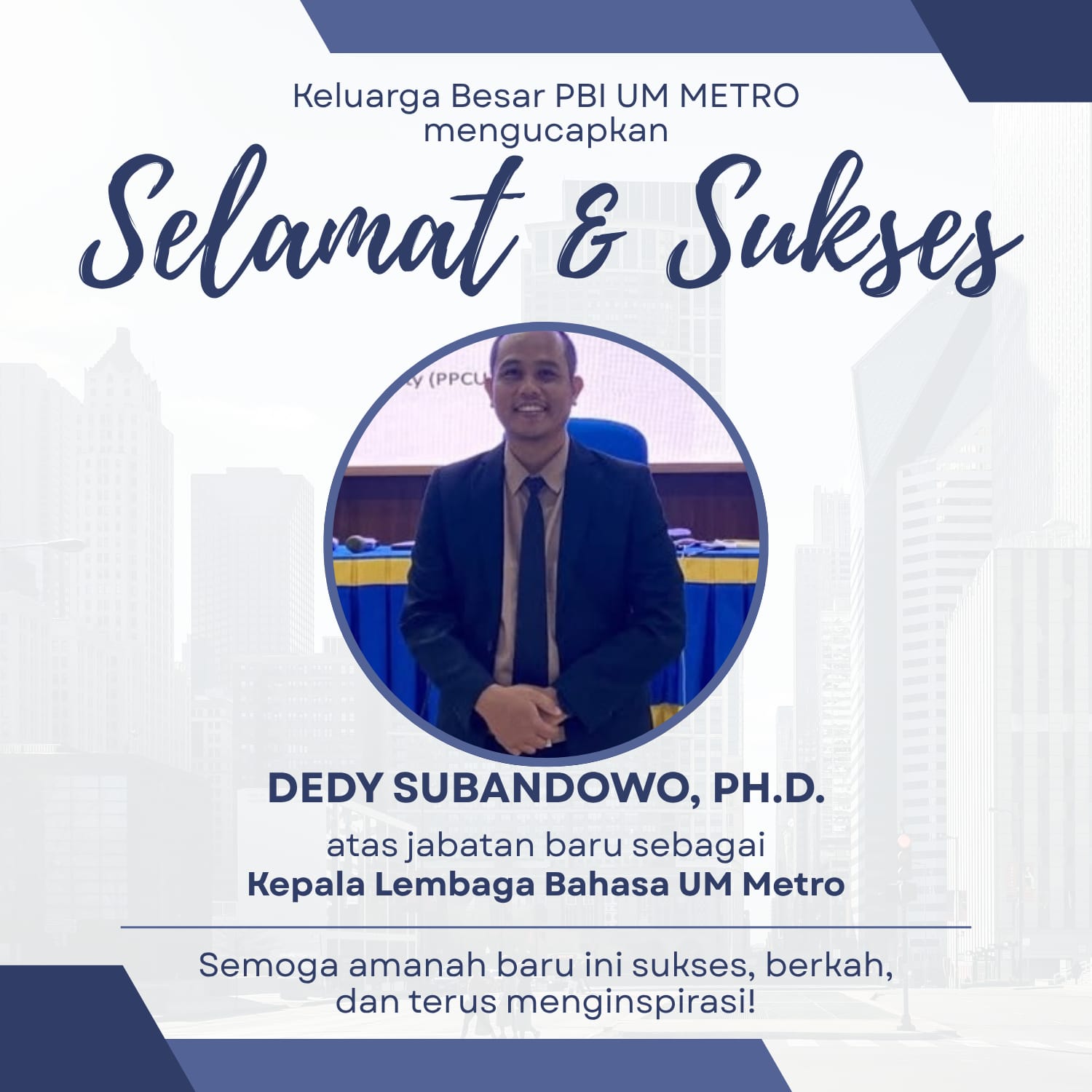 Selamat Kepada Bpk. Dedy Subandowo, PhD atas Jabatan Baru Sebagai Kepala Lembaga Bahasa UM Metro 2026-2030