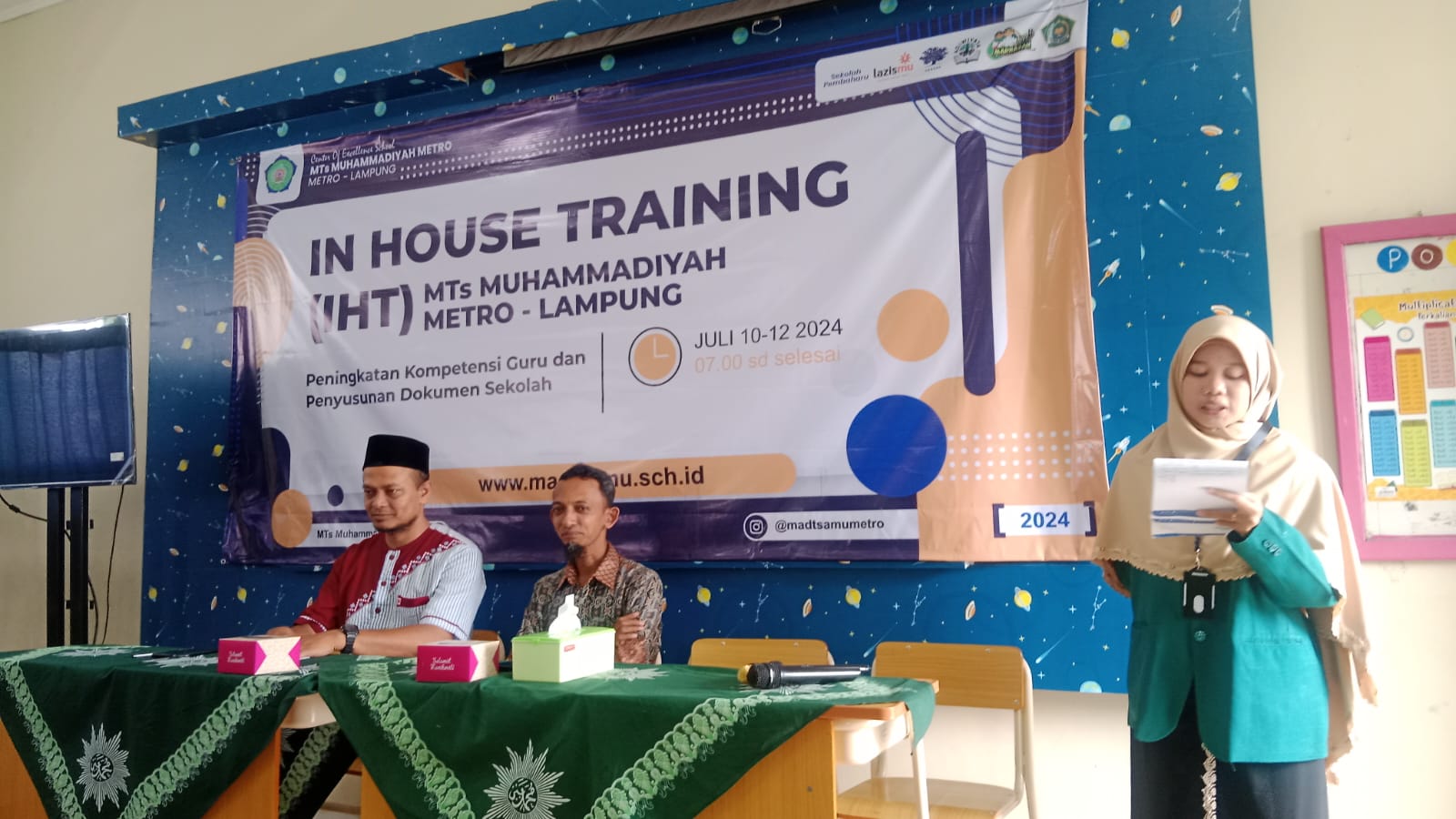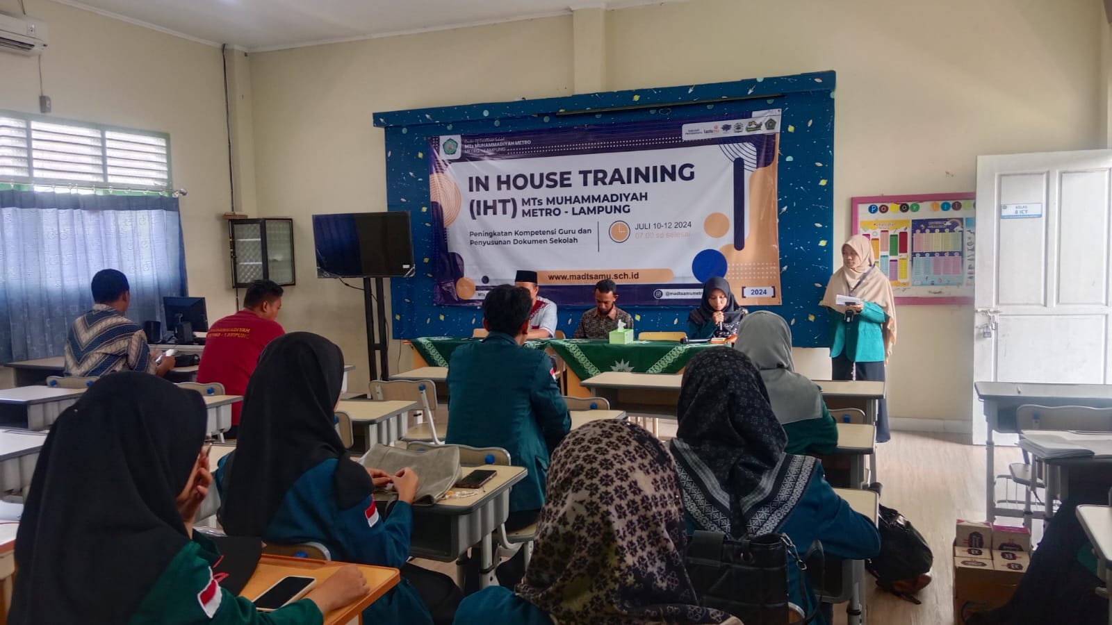 Metro, 10 Juli 2024 - MTs Muhammadiyah Metro berhasil menyelenggarakan kegiatan In House Training (IHT) dengan tema "Peningkatan Kompetensi Guru dan Penyusunan Dokumen Sekolah". Acara ini diadakan pada hari Rabu, 10 Juli 2024, dan dihadiri oleh seluruh guru MTs Muhammadiyah Metro. Kegiatan ini bertujuan untuk meningkatkan keterampilan mengajar serta kemampuan dalam penyusunan dokumen administrasi sekolah.