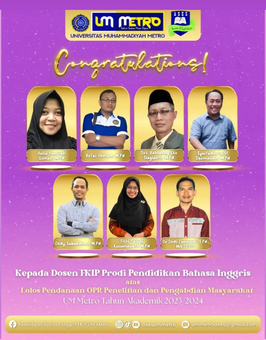 Tujuh Dosen PBI UM Metro Lolos Pendanaan OPR: Penelitian dan Pengabdian Masyarakat Tahun 2024
